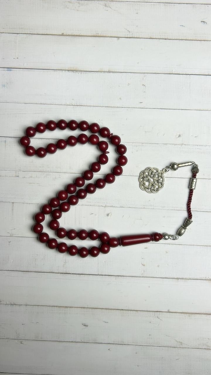 اللون التوتي العميق يمنحها حضورًا مميزًا يلفت الأنظار ويعكس ذوقًا راقيًا لعشّاق السبح الكلاسيكية الحديثة.